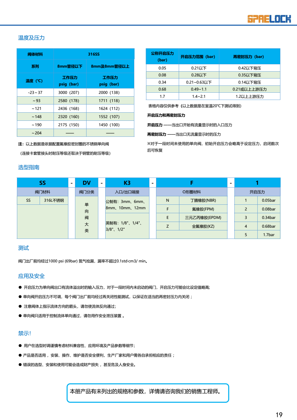 DV系列是一款通用型紧凑式单向阀,常用于在线分析,防止流体反向流动保护设备仪器 ,单向阀出厂设定好开启压力,常态为关闭,当系统压力达到设